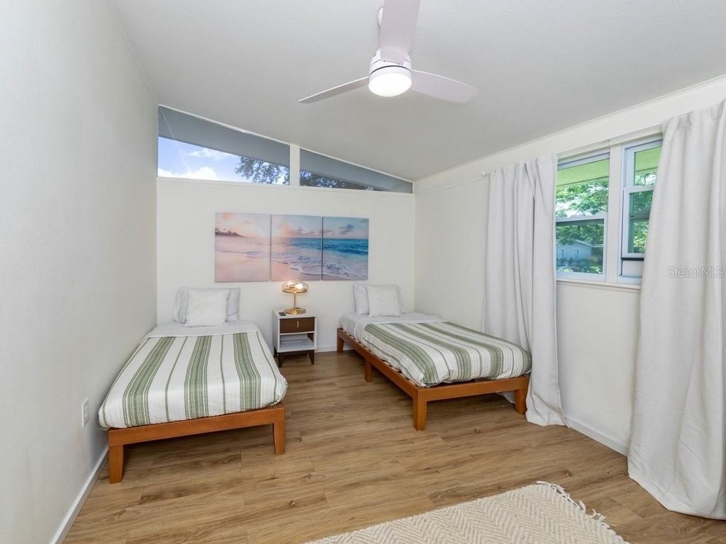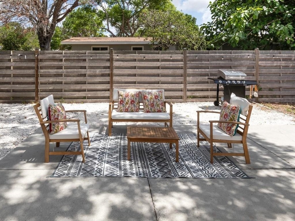 Nestled in one of Sarasota's most sought-after neighborhoods, this recently remodeled midcentury modern home is offered unfurnished or turn-key giving you the option to move right in or to use as your next investment property with a proven rental history of over 30 5-star reviews. Extensive updates throughout the home include a BRAND NEW RHEEM HVAC (2025), a NEWER ROOF (2022), new drain lines/plumbing (2022/2025) and major updates to the kitchen, bathrooms, and bedrooms (2022). Featuring three bedrooms and two full bathrooms, the home showcases vaulted ceilings and transom windows, infusing the space with natural light. The thoughtfully designed layout includes an open-concept living and dining area adjacent to the kitchen, perfect for entertaining. A custom built-in bookcase in the living room doubles as a hidden doorway to one of the bedrooms - ideal for use as a guest room, home office or extended living area. French doors off of the kitchen lead to a spacious and private fenced in backyard with room to create your own private oasis. Additional features include an oversized carport and shed complete with electricity - perfect for storage, hobbies, or a workshop. Located on a quiet street within city limits, you'll enjoy quick access to downtown Sarasota, Paver Park, Southside Village, Sarasota Memorial Hospital, and the famous Siesta Key Beach. The nearby Legacy Trail is just a bike ride away, offering a perfect blend of urban convenience and outdoor adventure. Whether you're looking for your dream home or a high-performing investment property, this is a rare opportunity to own a piece of paradise.